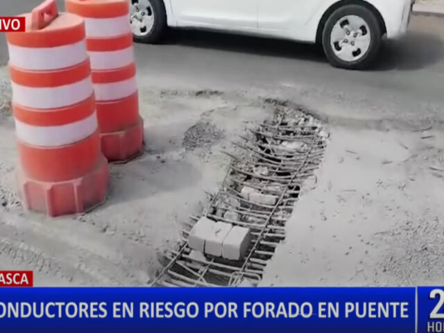 Cabe precisar que, el puente Nasca no solo tiene una imperfección, ya que, las cámaras de 24 Horas captaron que en otra zona de la vía los huecos se están empezando a observar, por lo que, urge un cambio total de la pista.