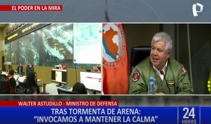 El último jueves 31 de julio, diversos casos de tormenta de arena en regiones de la costa peruana, causó la alarma de los ciudadanos. Ante esta situación, el titular del Ministerio de Defensa (Mindef), Walter Astudillo, compartió un mensaje a los peruanos.