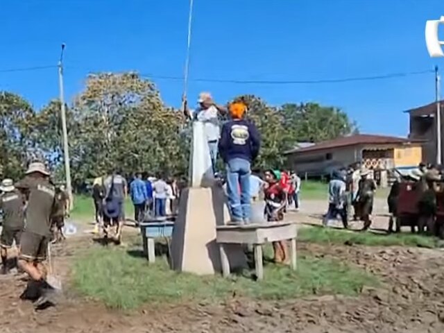 Desde tempranas horas, una gran cantidad de pobladores, junto a efectivos del Ejército del Perú, la Policía Nacional y la Marina de Guerra, realizaron labores de limpieza y acondicionamiento del lugar donde se izará la bandera peruana.