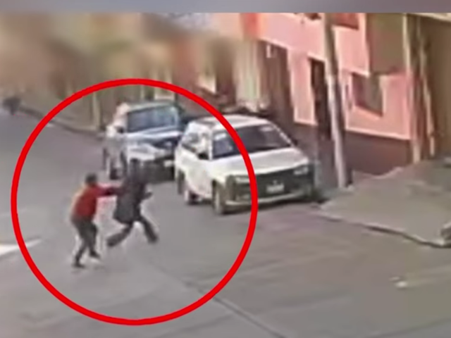 En Cajamarca, una joven fue víctima de un violento asalto cuando caminaba por el barrio Santa Elena. Las cámaras de seguridad captaron el momento exacto en que dos delincuentes la persiguen e interceptan para arrebatarle su mochila. En las imágenes se escucha a la víctima gritar desesperadamente por ayuda mientras forcejea con los ladrones, sin que nadie pueda auxiliarla.