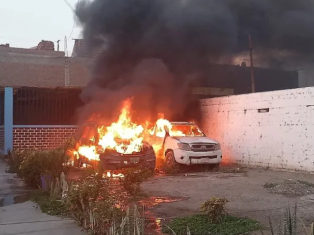 Un hecho alarmante se registró el último sábado en la provincia del Santa, región Áncash, donde dos patrulleros policiales fueron incendiados frente al Local Comunal de San Martín, ubicado a pocos metros de la comisaría de San Jacinto. El fuego se desató en plena vía pública, generando momentos de pánico entre los vecinos del sector.