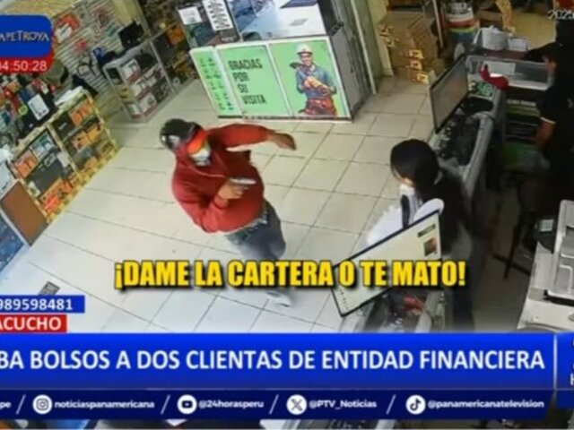 En la ciudad de Ayacucho, dos mujeres se convirtieron en víctimas de la inseguridad ciudadana, luego que un delincuente armado les arrebatara sus carteras en el interior de un establecimiento comercial.