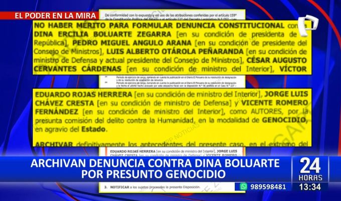 La Fiscalía de la Nación archivó la investigación que se le sigue a la presidenta de la República, Dina Boluarte, por el presunto delito de genocidio a raíz de las muertes suscitadas en las protestas de 2022 y 2023 en contra de su gobierno.