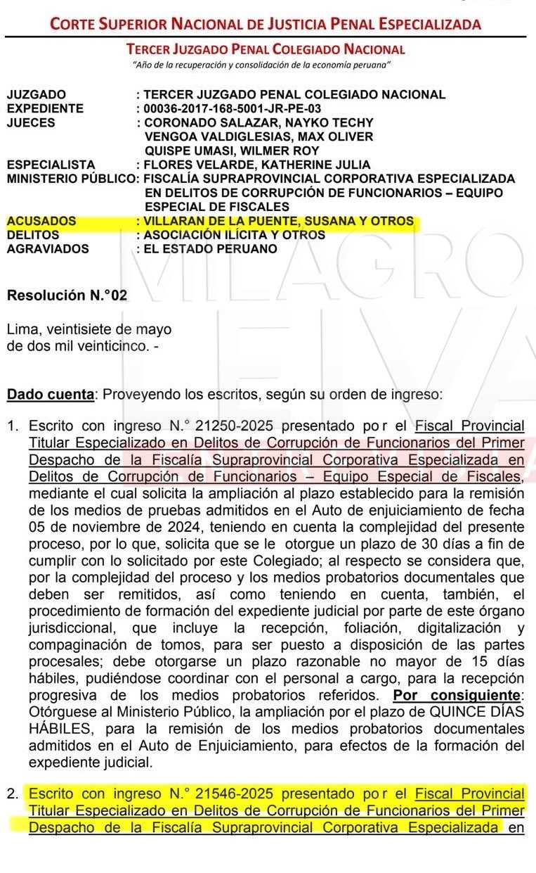 Finalmente, la resolución deja claro que no se aceptará la reprogramación de la fecha inicialmente establecida para el juicio oral. Esto afecta directamente a Villarán y a otros implicados, como los exfuncionarios de su gestión, quienes deberán esperar el curso natural del proceso. "No ha lugar a lo solicitado y estése a la fecha programada en el auto de citación a juicio oral", concluye el documento, reafirmando la postura del tribunal de mantener los plazos establecidos a pesar de las presiones del equipo fiscal.