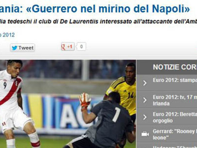 El eventual pase de Guerrero al Nápoli, también fue noticia en el periódico italiano Corrielle dello Sport, quien señala que pese al difícil carácter del jugador peruano, su calidad no se discute.
