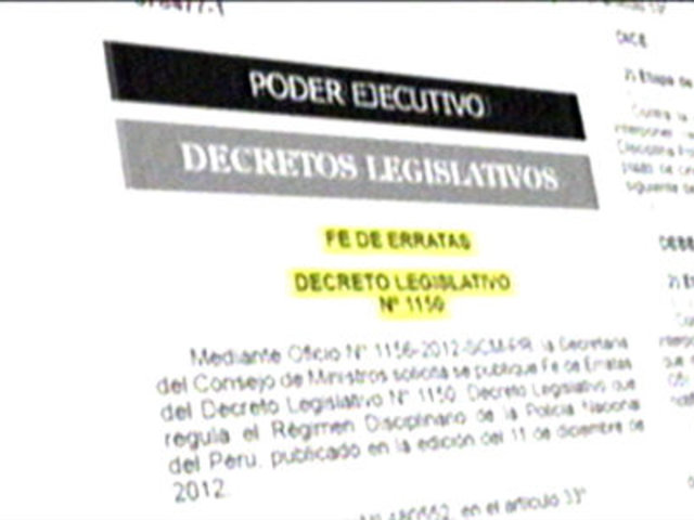 Luego de la polémica el Poder Ejecutivo se rectificó. Mediante una fe de erratas corrigió el controvertido Decreto Legislativo 1150 del reglamento de la Policía.
