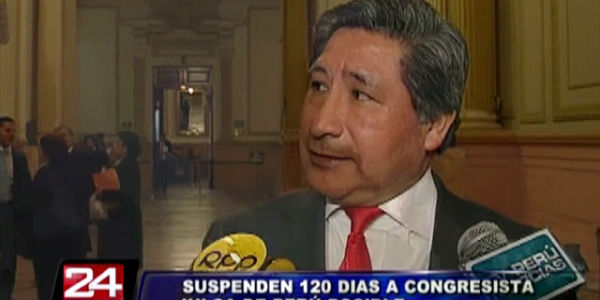 Mientras tanto, el congresista de Perú Posible, Modesto Julca, fue suspendido 120 días por sugerir la contratación de un familiar en el Parlamento.