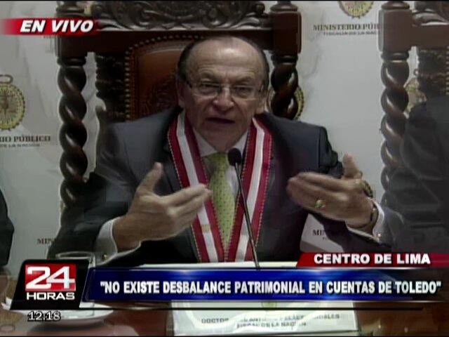 El titular del Ministerio Público informó que no hay elementos probatorios para afirmar que hay enriquecimiento ilícito por parte de Alejandro Toledo o su esposa Eliane Karp.