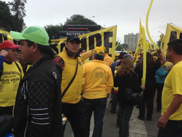 Un nutrido grupo de militantes de Solidaridad Nacional llegó hasta el Campo de Marte, algunos a pie, otros a bordo de varios buses para participar en una marcha a favor de su líder, Luis Castañeda Lossio.