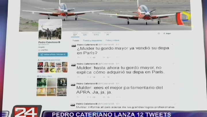 A través de las redes sociales, el ministro Pedro Cateriano arremetió contra el ex presidente Alan García y el congresista Mauricio Mulder. El titular de Defensa lanzó 12 tuits en una hora.
