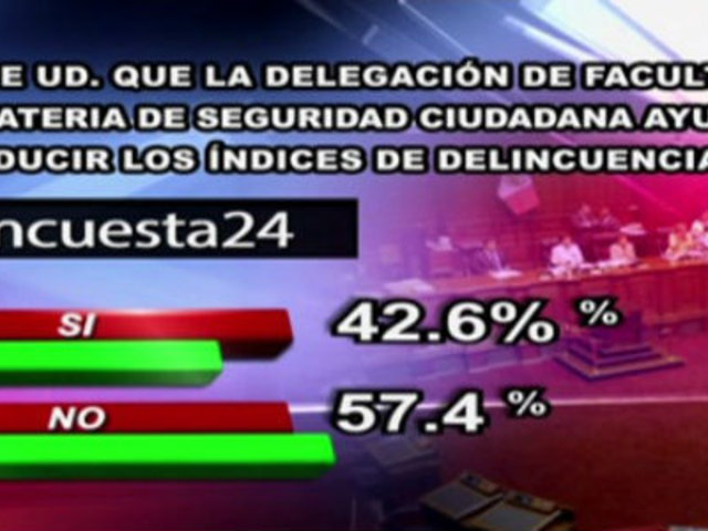 Encuesta 24: 57.4% no cree que delegación de facultades en seguridad ciudadana ayude a reducir delincuencia