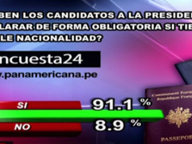 Encuesta 24: 91.1% cree que candidatos deben declarar obligatoriamente doble nacionalidad