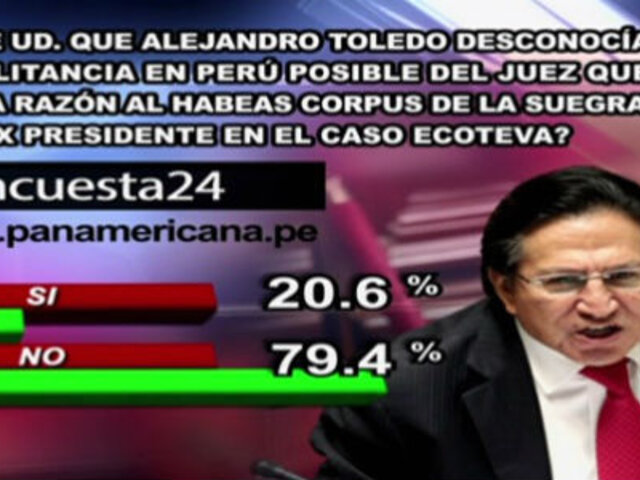 Encuesta 24: 79.4% cree que Toledo conocía militancia de juez en caso Ecoteva