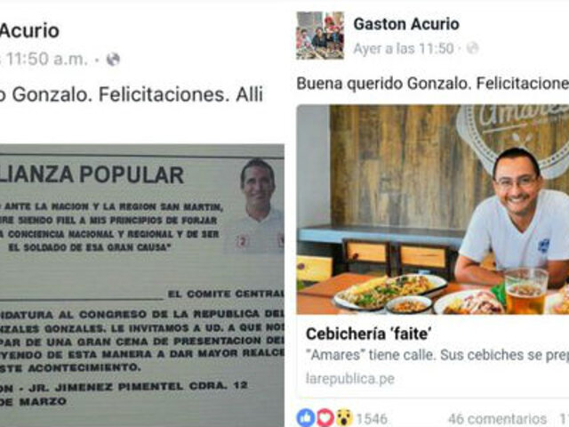 Este señor es Gustavo Gonzalo, candidato al Congreso por Alianza Popular en la provincia de San Martín. El candidato copió el nombre y la publicación del exitoso chef Gastón Acurio, eliminó el link del diario La República que hacía referencia a la cebichería Amares del chef Gonzalo Ruiz y lo sustituyó por un evento político.