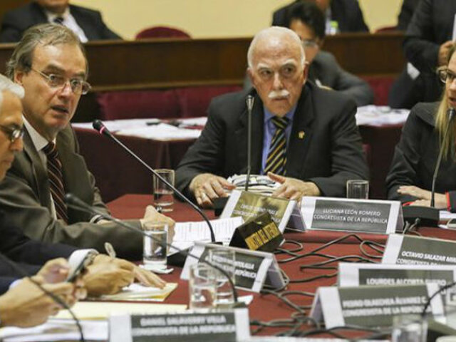 El ministro del Interior Carlos Basombrío llegó al Congreso de la República para presentar el informe pendiente de su despacho sobre el supuesto ‘Escuadrón de la muerte’. Los policías involucrados son un general, un comandante y siete suboficiales.