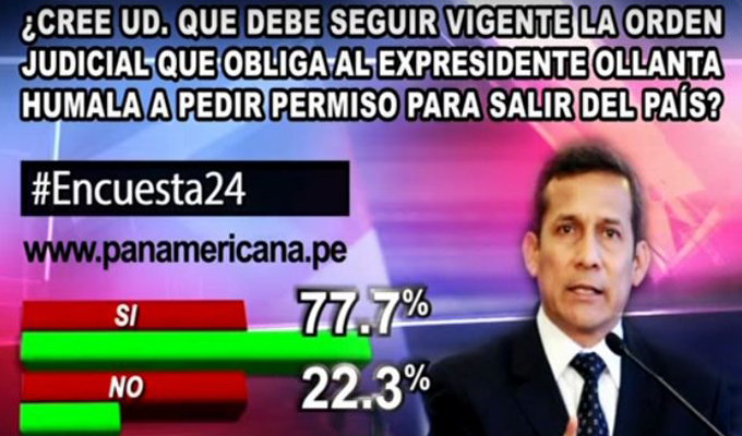 La mayoría de los encuestados considera que la norma que exige al ex presidente Humala, solicitar un permiso para salir del país, debe continuar vigente.