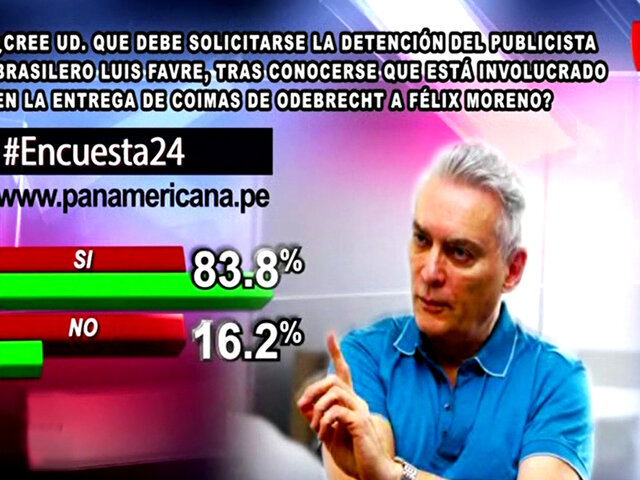 La mayoría de encuestados en 24 Horas se mostró a favor de que se solicite la detención del publicista Luis Favre, tras conocerse que está involucrado en la entrega de coimas de Odebrecht para Moreno.