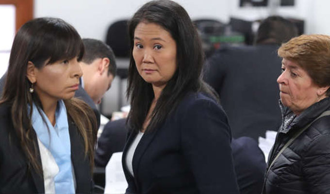 Keiko Fujimori llegó muy temprano a la audiencia donde se sigue sustentando el pedido de prisión preventiva por 36 meses, solicitado por la fiscalía en su contra. En la primera parte de la audiencia de hoy, la abogada Giuliana Loza resaltó que la Fiscalía, sin esperar el resultado ya señalaba a los investigados como acusados.