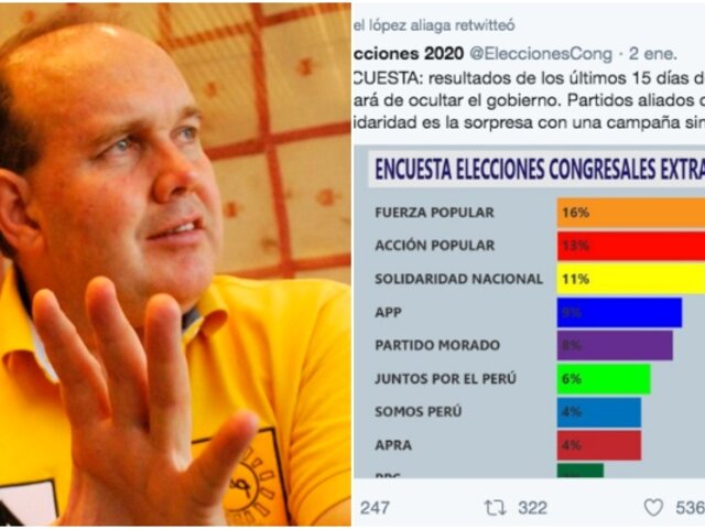 Rafael López Aliaga, secretario general de Solidaridad Nacional, compartió una supuesta encuesta que mostraba a su partido con la tercera mayor intención de voto para las elecciones parlamentarias del 26 de enero.