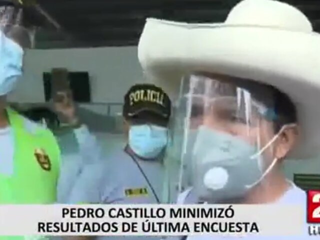 Pedro Castillo afirmó este viernes que "palpa y vive las encuestas en la calle" y no tiene tiempo para entretenerse en otros datos, refiriéndose al último sondeo de Datum, que acorta la brecha que lo separa de Keiko Fujimori en el segundo lugar, otórgandole el 41% de votos.