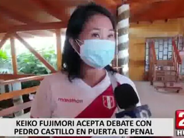 La candidata presidencial de Fuerza Popular, Keiko Fujimori, decidió aceptar la propuesta de su adversario, Pedro Castillo, y dijo que está dispuesta a debatir sus propuestas en la puerta del penal de Santa Mónica, en Chorrillos.
