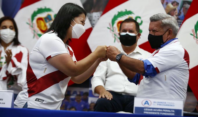 La candidata de Fuerza Popular, Keiko Fujimori, se reunió hoy con el líder de Alianza para el Progreso (APP), César Acuña Peralta , para agradecer el respaldo de esta agrupación política, decisión tomada durante un plenario, con miras a la segunda vuelta electoral.