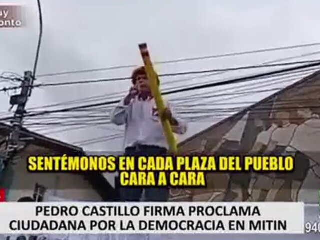 El candidato presidencial por Perú Libre, Pedro Castillo, firmó frente a las personas presentes en un mitin en Iquitos la Proclama Ciudadana, un documento en el que se compromete a los dos candidatos a la segunda vuelta electoral a cumplir una serie de medidas que garanticen la democracia en el país.