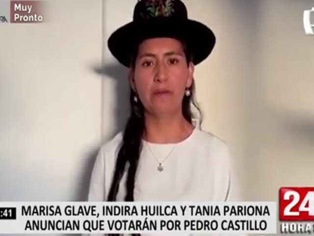 Marisa Glave, Indira Huilca y Tania Pariona anuncian apoyo a Pedro Castillo