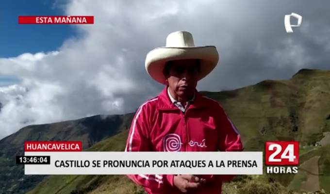 El candidato a la presidencia de la República por Perú Libre, Pedro Castillo, rechazó desde Huancavelica la agresión y persecución que sufrieron periodistas tras su mitin en Ayacucho.