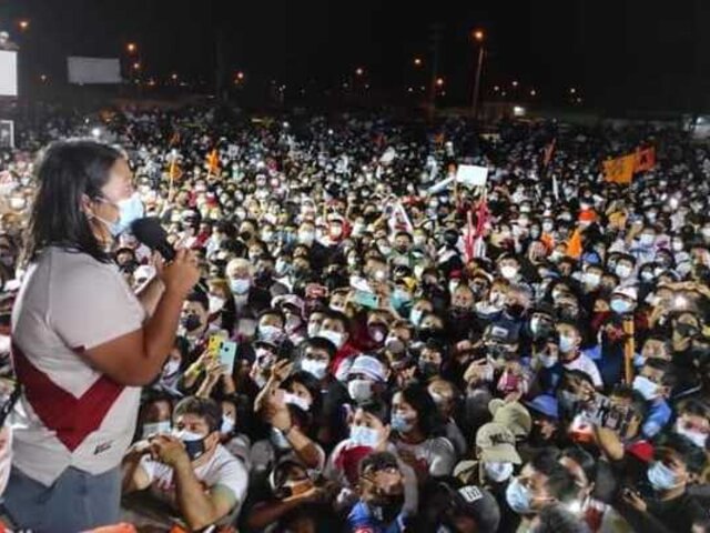 En horas de la noche, la lideresa de Fuerza Popular encabezó un mitin en la ciudad de Sullana, donde se comprometió en una eventual gestión a realizar 160 mil inmunizaciones diarios y la construcción de 100 plantas de oxígeno a nivel nacional.