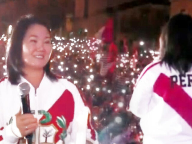 La lideresa de Fuerza Popular, Keiko Fujimori, se dirigió este sábado a sus simpatizantes en la plaza Bolognesi en la denominada "Vigilia por la democracia".