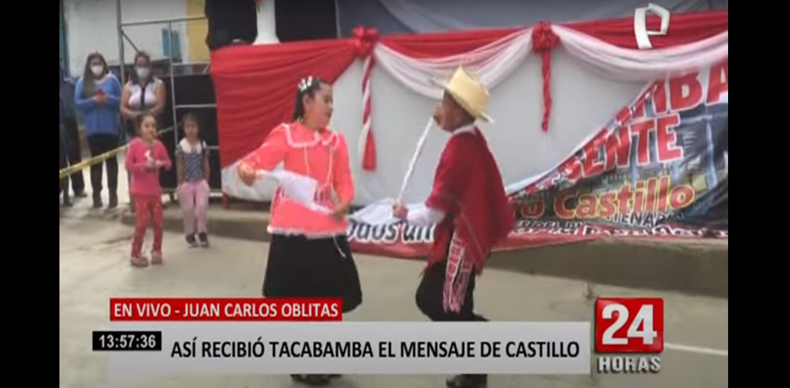 Desde la Plaza Mayor de Tacabamba, varias personas se reunieron a realizar bailes típicos festejando y dando muestra de apoyo a Castillo.