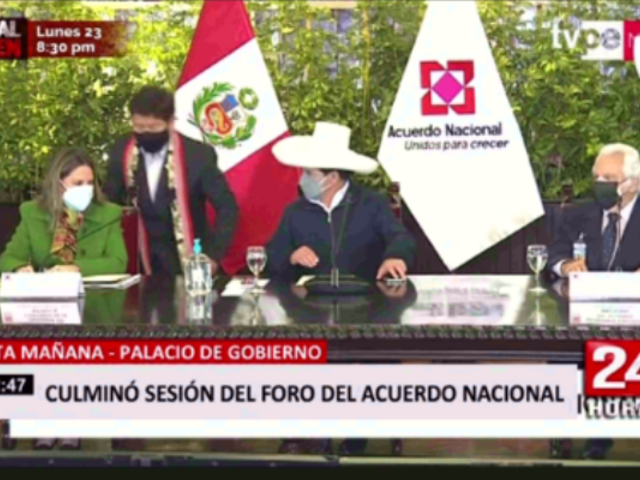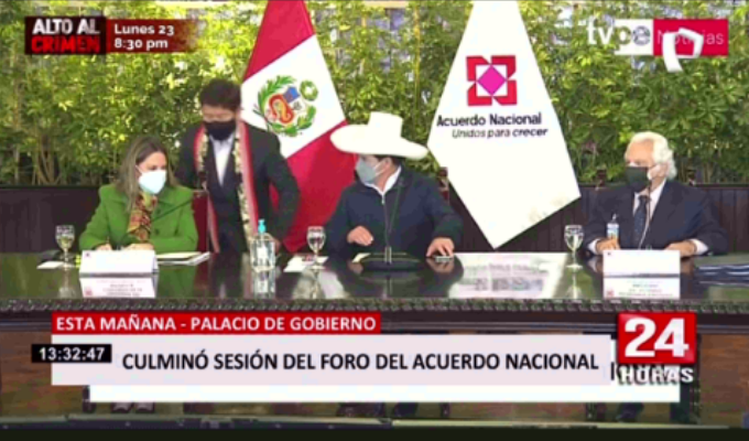 El presidente Pedro Castillo presidió esta mañana la sesión del foro del Acuerdo Nacional en Palacio de Gobierno.