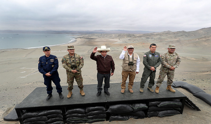 El presidente de la República, Pedro Castillo, participó del desembarco anfibio programado en homenaje al Bicentenario de la Marina de Guerra del Perú, que se desarrolló en la Bahía de Salinas, en Huacho.