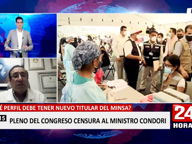 Con 71 votos a favor, 32 en contra y 13 abstenciones, el Congreso decidió censurar a Hernán Condori, por lo que ahora el presidente Castillo tendrá que aceptar su renuncia y nombrar su reemplazo. Ante esta situación, cabe preguntarse ¿cuál debería ser el perfil del siguiente ministro de Salud?nbsp;Paco Flores conversó con el Dr. Alfredo Celis, vicedecano nacional del Colegio Médico del Perú (CMP) para 24 Horas Mediodía, para que analice la situación de este importante ministerio y las características que debería fortalecer esta cartera.