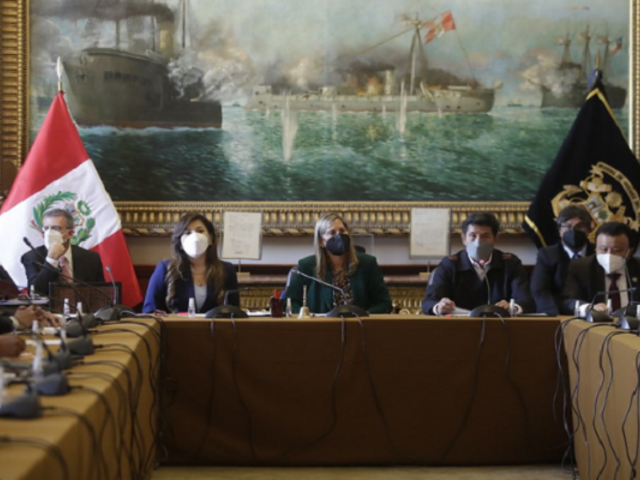 El presidente Pedro Castillo durante la reunión con la Junta de Portavoces, expresó que desde el Ejecutivo no ven un Congreso obstruccionista, ya que hay un proyecto de ley en el Parlamento donde se debe debatir la eliminación del cierre del Congreso y la vacancia presidencial.