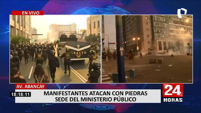 Lamentablemente la situación se fue empeorando cada vez más e incluso nuestro equipo de Panamericana Televisión tuvo que ponerse a buen resguardo ya que los manifestantes empezaron a lanzar muchos proyectiles que les pudo haber lastimado. A su vez, se registraron daños en el edificio del Poder Judicial.