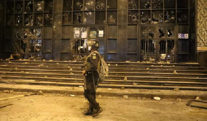Los sujetos que ocasionaron todos estos desmanes no solo utilizaban piedras, sino también palos que habían sido robados de una iglesia del centro de la capital.