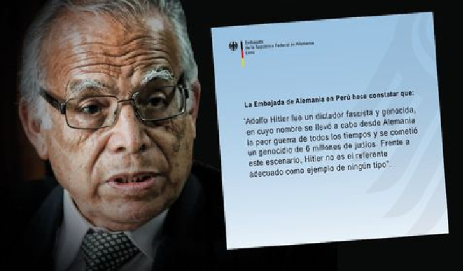 La embajada de Alemania en nuestro país rechazó el discurso del premier, Aníbal Torres en donde elogia al exdictador nazi y lo pone como un ejemplo por levantar a Alemania económicamente.