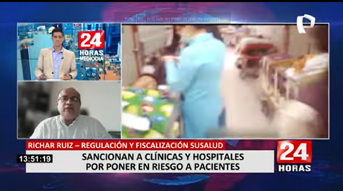 En los estudios de 24 horas mediodía estuvo el superintendente adjunto de la superintendencia adjunta de regulación y fiscalización de SuSalud, Richard Ruiz para hablar sobre las sanciones que se le impusieron a las clínicas y hospitales por poner en riesgo a los pacientes.