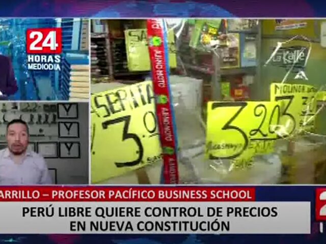 Jorge Carrillo, profesor y experto en finanzas de la Pacífico Business School, estuvo en 24 Horas Mediodía, donde se refirió sobre la propuesta de Perú Libre, que plantea incluir el control de precios en una eventual nueva Constitución.