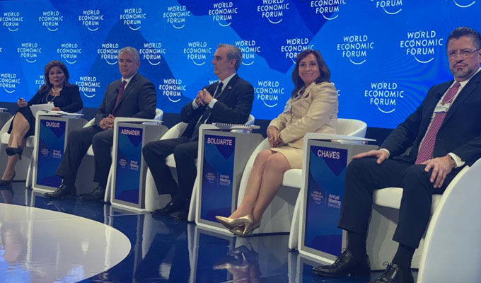La también ministra de Desarrollo e Inclusión Social, participó en el panel presidencial junto con el mandatario de Costa Rica, Rodrigo Cháves; de Colombia, Iván Duque; de República Dominicana, Luis Abinader; moderado por la directora regional para América Latina del WEF, Marisol Argueta.