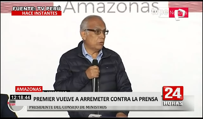 Asimismo, el presidente del Consejo de Ministros del Perú, Aníbal Torres, aprovechó la conferencia para acusar a la prensa de estar buscando perjudicar la imagen del principal representante del Poder Ejecutivo.