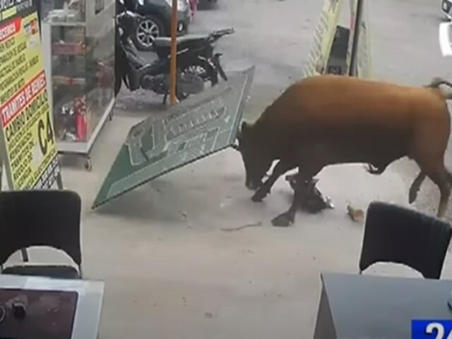 Minutos de pánico generó un toro que se desplazó por la Panamericana Sur. El hecho ocurrió en Lurín, a la altura del kilómetro 21.5, donde destrozó todo lo que se cruzaba en su camino.