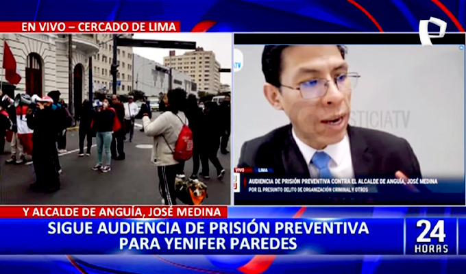 En los exteriores ha aparecido dos grupos a favor y en contra del gobierno que se encuentran arengando. Como se recuerda, el pedido fiscal es de 23 años de pena privativa de la libertad para Yenifer Paredes por los presuntos delitos de organización criminal, lavado de activos y colusión agravada.