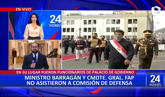 El ministro de Defensa, Daniel Barragán, y el jefe de la Fuerza Aérea del Perú, no asistieron el día de hoy jueves 29 a la sesión de la Comisión de Defensa del Congreso de la República, para responder por el presunto viaje que el prófugo Fray Vásquez Castillo habría realizado en el avión presidencial.