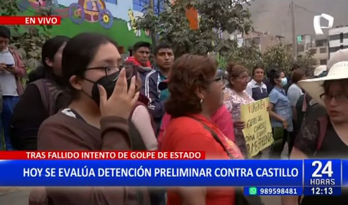 Desde tempranas horas de este jueves 8 de diciembre, un grupo de manifestantes vienen protestando en las afueras de la sede de la Diroes, donde se encuentra detenido el expresidente de la República, Pedro Castillo Terrones, acusado por los presuntos delitos de rebelión y conspiración por anunciar el cierre inconstitucional del Congreso.