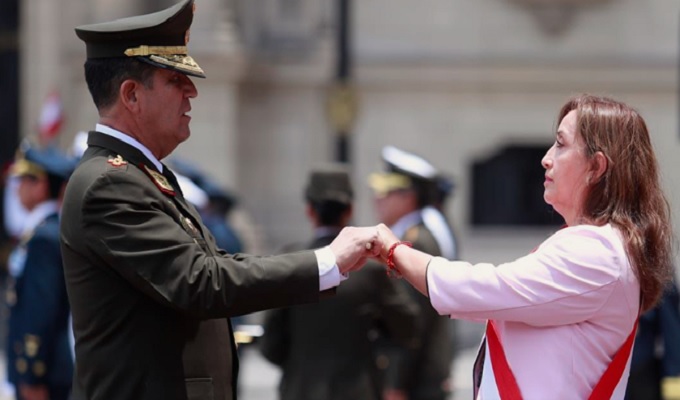 La presidenta de la República, Dina Boluarte, recibe este miércoles 01 de marzo el bastón de mando como jefa suprema de las Fuerzas Armadas y la Policía Nacional del Perú (PNP).