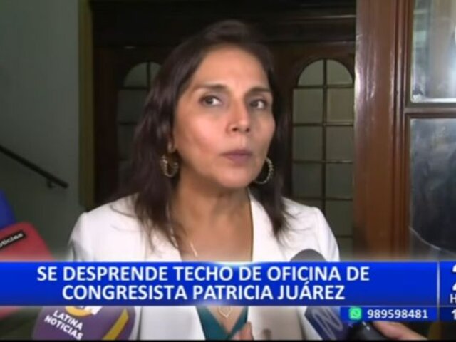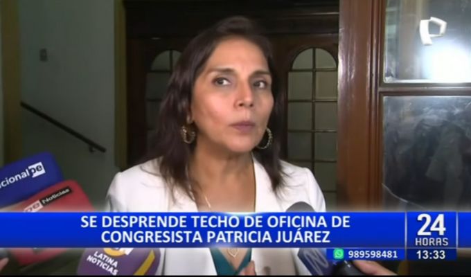 La congresista de Fuerza Popular, Patricia Juárez, se pronunció luego que parte del techo de su despacho en el Congreso se desplomara, dejando su oficina cubierta de tierra, madera, trozos de concreto y con algunos muebles dañados.