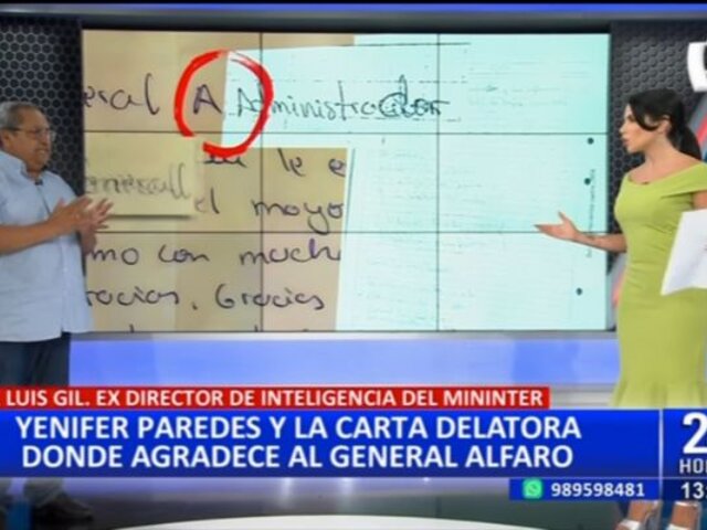 El exdirector de Inteligencia del Ministerio del Interior (Mininter) José Luis Gil, se pronunció sobre el informe del dominical Panorama, que reveló que la cuñada del expresidente Castillo, Yenifer Paredes, envió una carta al excomandante general de la PNP, Raúl Alfaro, justo un día antes de que la hermana de Lilia Paredes saliera en libertad.